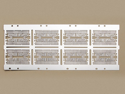 集成電路引線框架作為集成電路、半導(dǎo)體的芯片載體,是一種借助于鍵合材料(銅絲、鋁絲、金絲)實(shí)現(xiàn)芯片內(nèi)部電路引出端與外引線的電器鏈接,形成電氣回路的關(guān)鍵結(jié)構(gòu)件,具有蝕刻精度高、光滑無(wú)毛刺、無(wú)壓痕以及不改變材料特性等特點(diǎn)。