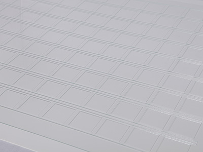 OLED顯示屏封裝玻蓋板是OLED顯示屏的密封蓋板,是一種能精確定位封裝的關(guān)鍵部件,蓋板可安裝特種干燥劑,與有機(jī)發(fā)光電極等器件裝置成密封性能良好的有機(jī)發(fā)光顯示器。其主要采用化學(xué)蝕刻的工藝對(duì)玻璃基板進(jìn)行深加工,是OLED顯示屏產(chǎn)業(yè)鏈中的一個(gè)重要組成部分,隨著OLED產(chǎn)業(yè)的發(fā)展而同步發(fā)展。具有尺寸大、圖案精度高、Mark點(diǎn)標(biāo)識(shí)清晰、位置準(zhǔn)確、便于流水線自動(dòng)識(shí)別等特點(diǎn)。