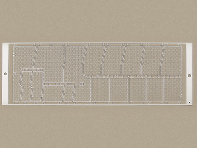 柵網(wǎng)即柵極是VFD(真空熒光顯示屏)的重要部件,其作用是在不妨礙顯示的原則下,將不銹鋼等的薄板予以光刻蝕(PHOTO-ETHING)后成型的金屬網(wǎng)格(MESH),在其上加上正電壓,可加速并擴(kuò)散自燈絲所放射出來(lái)的電子,將之導(dǎo)向陽(yáng)極;相反地,如果加上負(fù)電壓,則能攔阻游向陽(yáng)極的電子,使陽(yáng)極消光??蓮V泛應(yīng)用于汽車VFD面板、家電VFD面板、 音響、VTR VFD面板、事務(wù)機(jī)用VFD面板等領(lǐng)域。